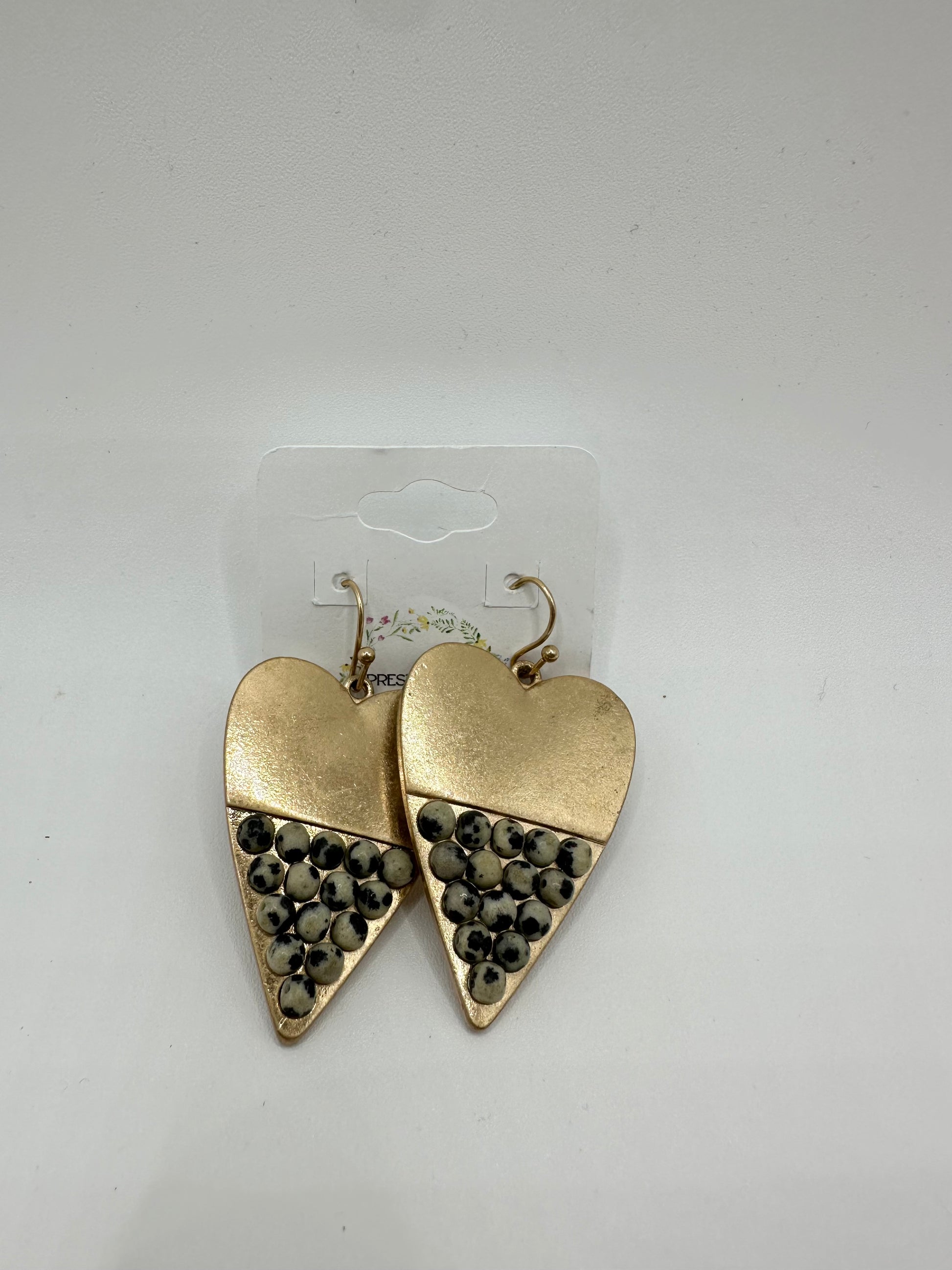 Heart drop earrings with gray blended beads on bottom half