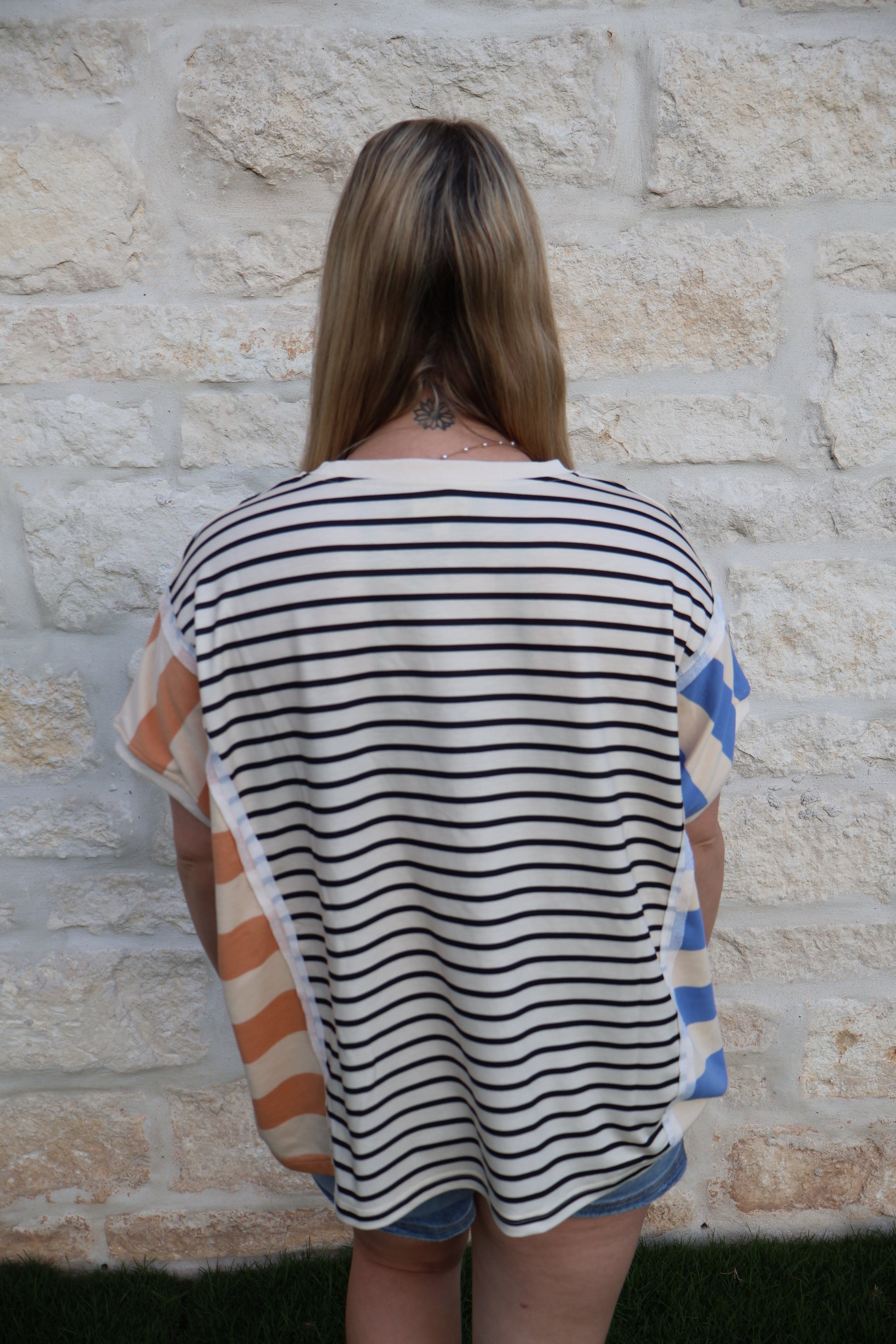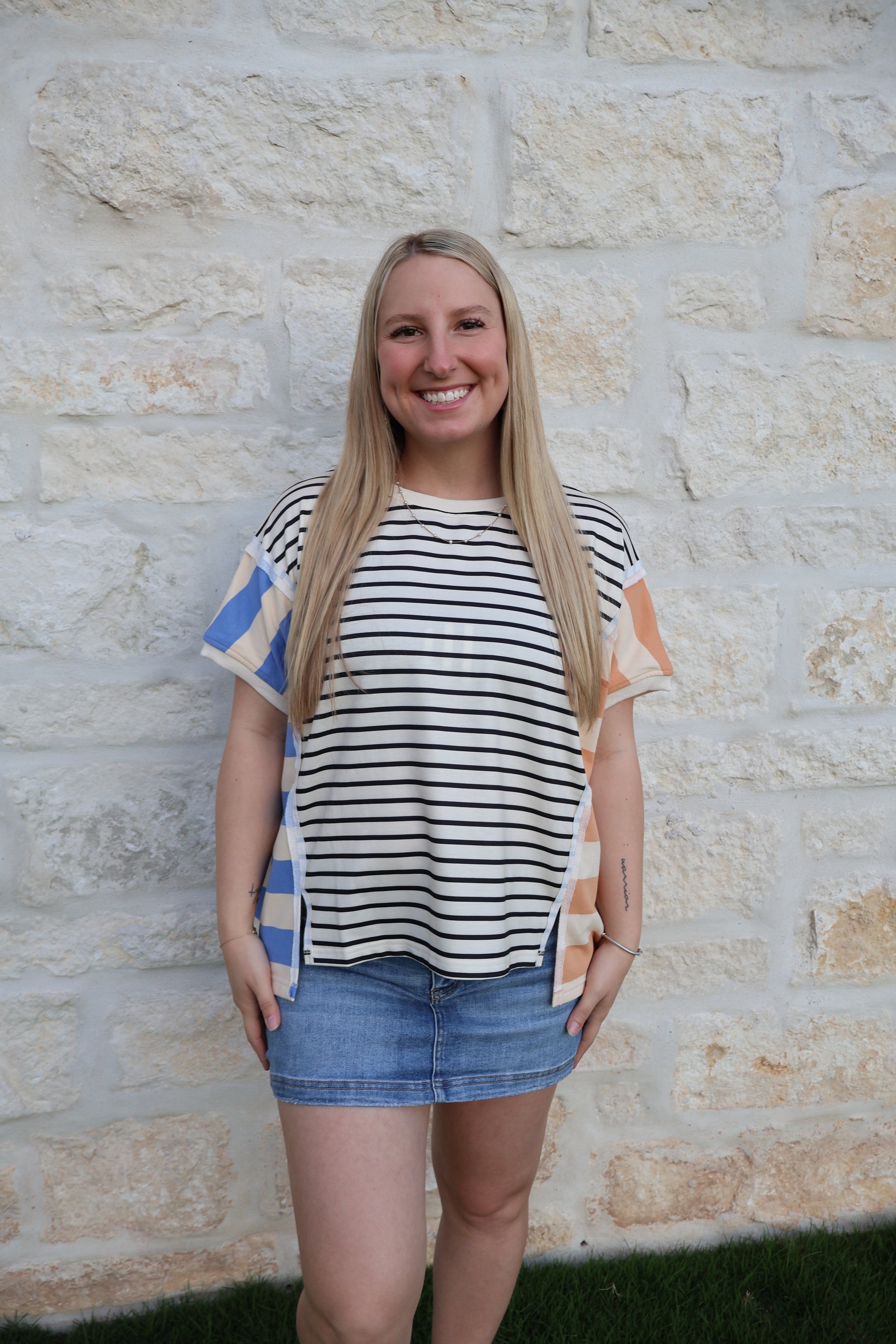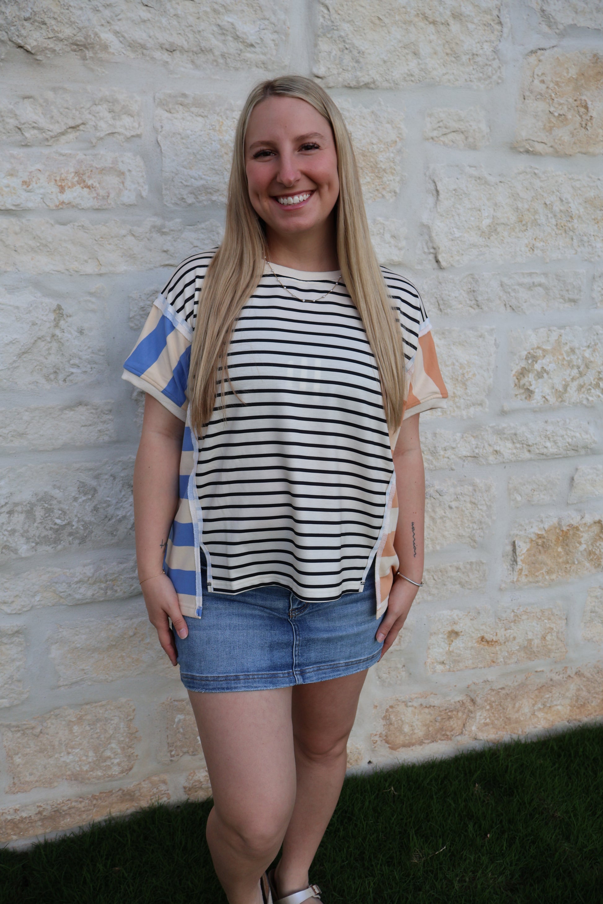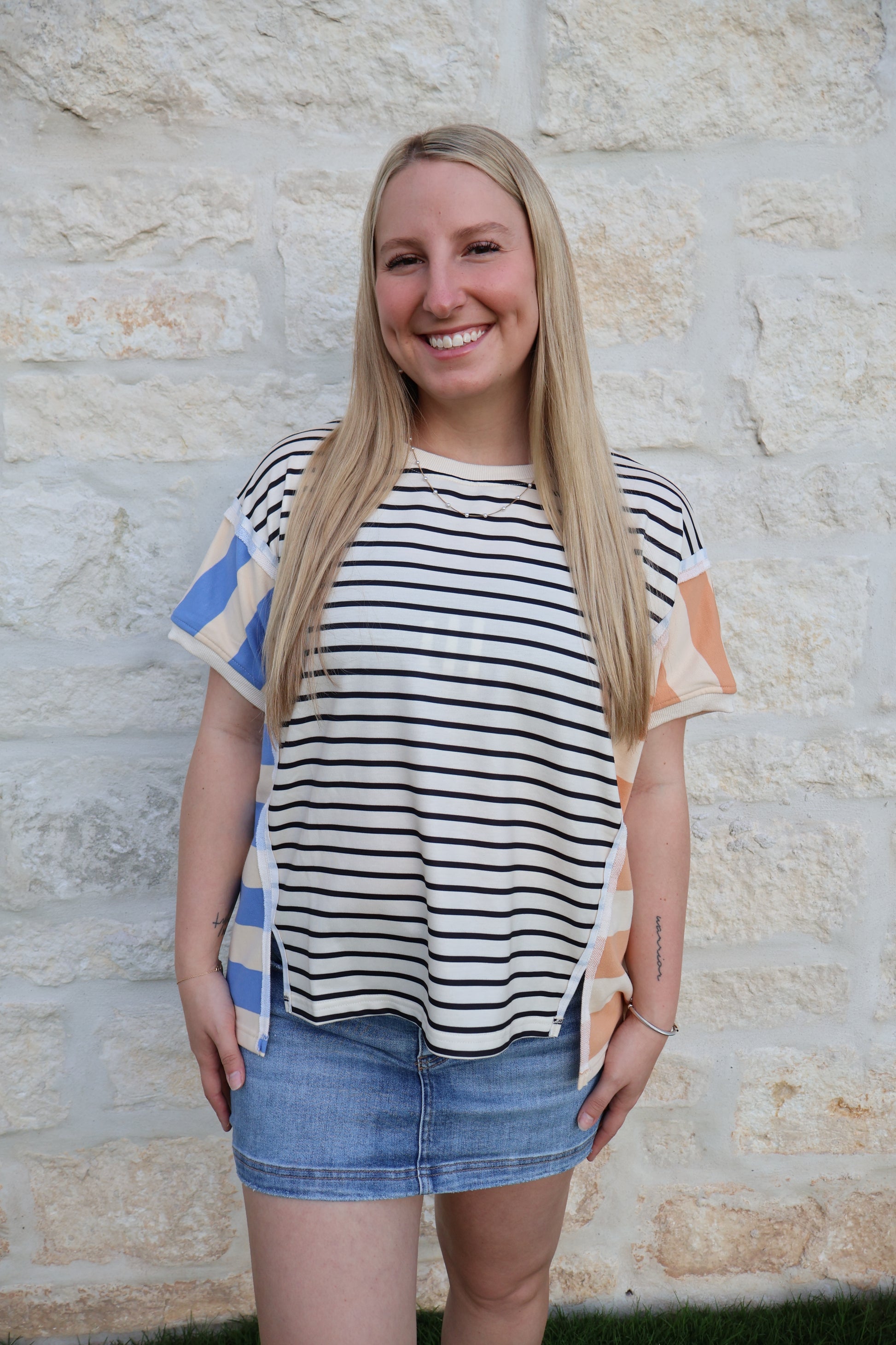 Stripe mixed loose fit top with slip detail