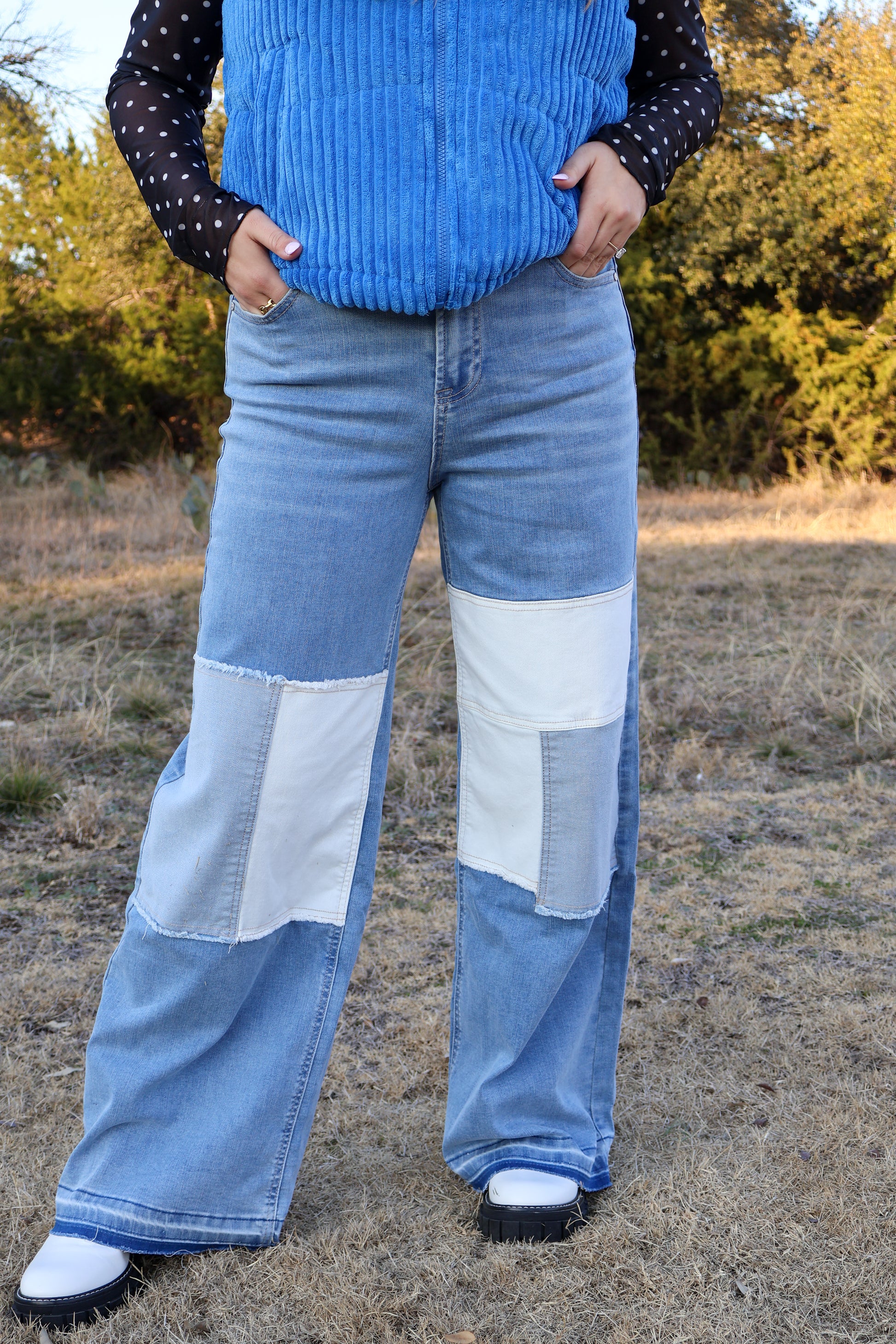 Stretched patchwork wide leg jeans